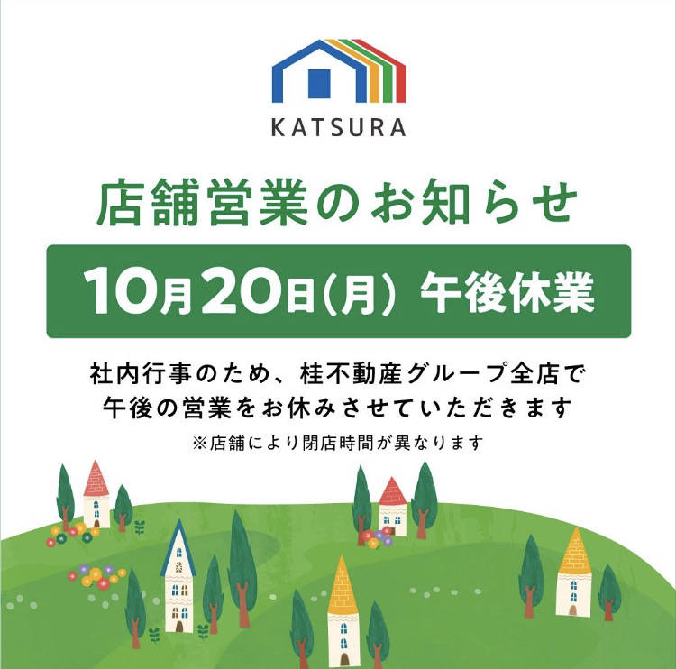 【桂不動産グループ】10/20(月)営業時間変更のお知らせ