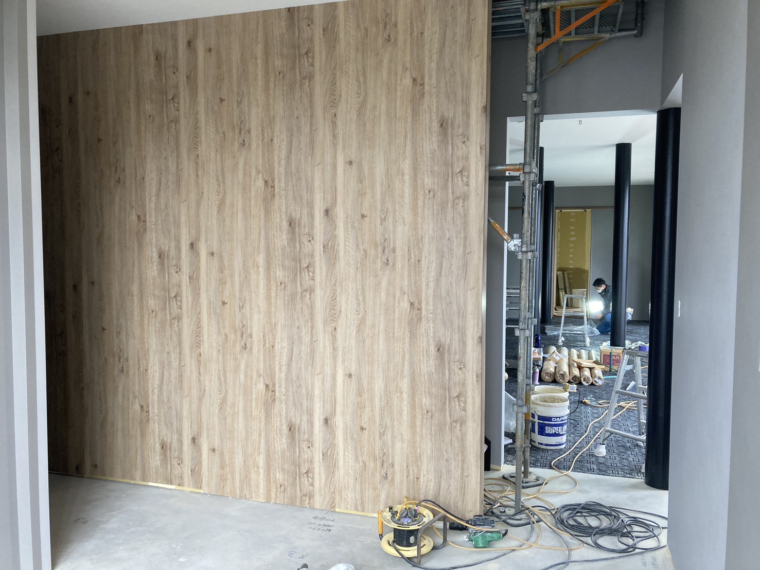 室内は壁紙もほぼ張り終わり、床の下地を施工中で