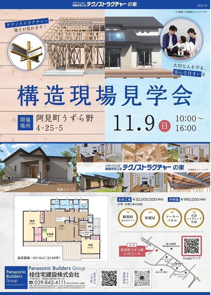 阿見町うずら野☆平屋新築構造見学会のお知らせ(^▽^)/